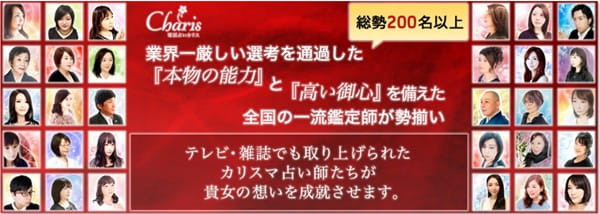 全国各地の有名な老舗対面占い館と提携しており、在籍占い師は1,400名以上となっています。厳しい占い師オーディションをクリアした占い師だけが在籍しており、デビュー後も定期的な講習会でスキルアップしています。