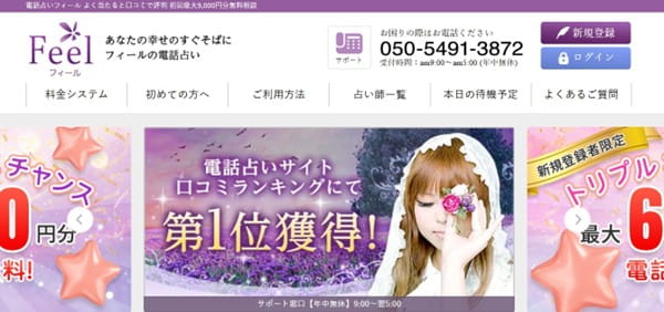 テレビ・雑誌で活躍する占い師も何人かいるため、「的中率が高い」など評判の電話占いと言ってよいでしょう。フィールでは占い師のプロフィールが詳細に記載されており、初めてでも探しやすい点がメリットです。